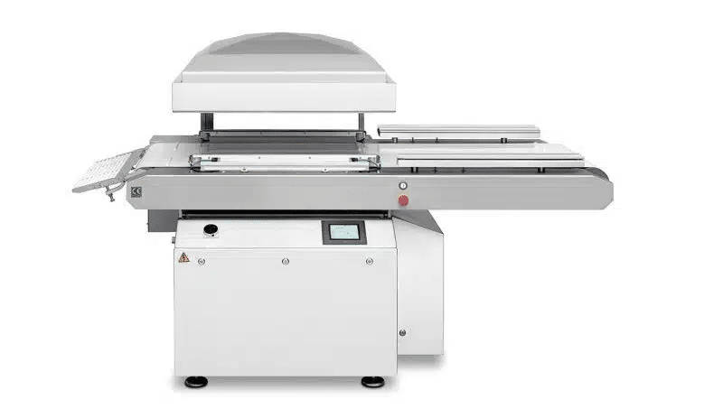 เครื่องซีลสูญญากาศ แบบห้องสูญญากาศห้องคู่ ที่ผลิตจากสแตนเลสสตีลที่ทนทานต่อการกัดกร่อน ซ่อมบำรุงน้อย มาตรฐานการกันน้ำ IP65 มีล้อเลื่อน เคลื่อนที่ง่าย สามารถตั้งโปรแกรมการทำงานได้ถึง 10 โปรแกรม เซ็นเซอร์สุญญากาศพร้อมระบบตรวจจับจุดไอน้ำ ปั๊มสุญญากาศ BUSCH ในตัว พร้ดีไซน์ถูกสุขอนามัย