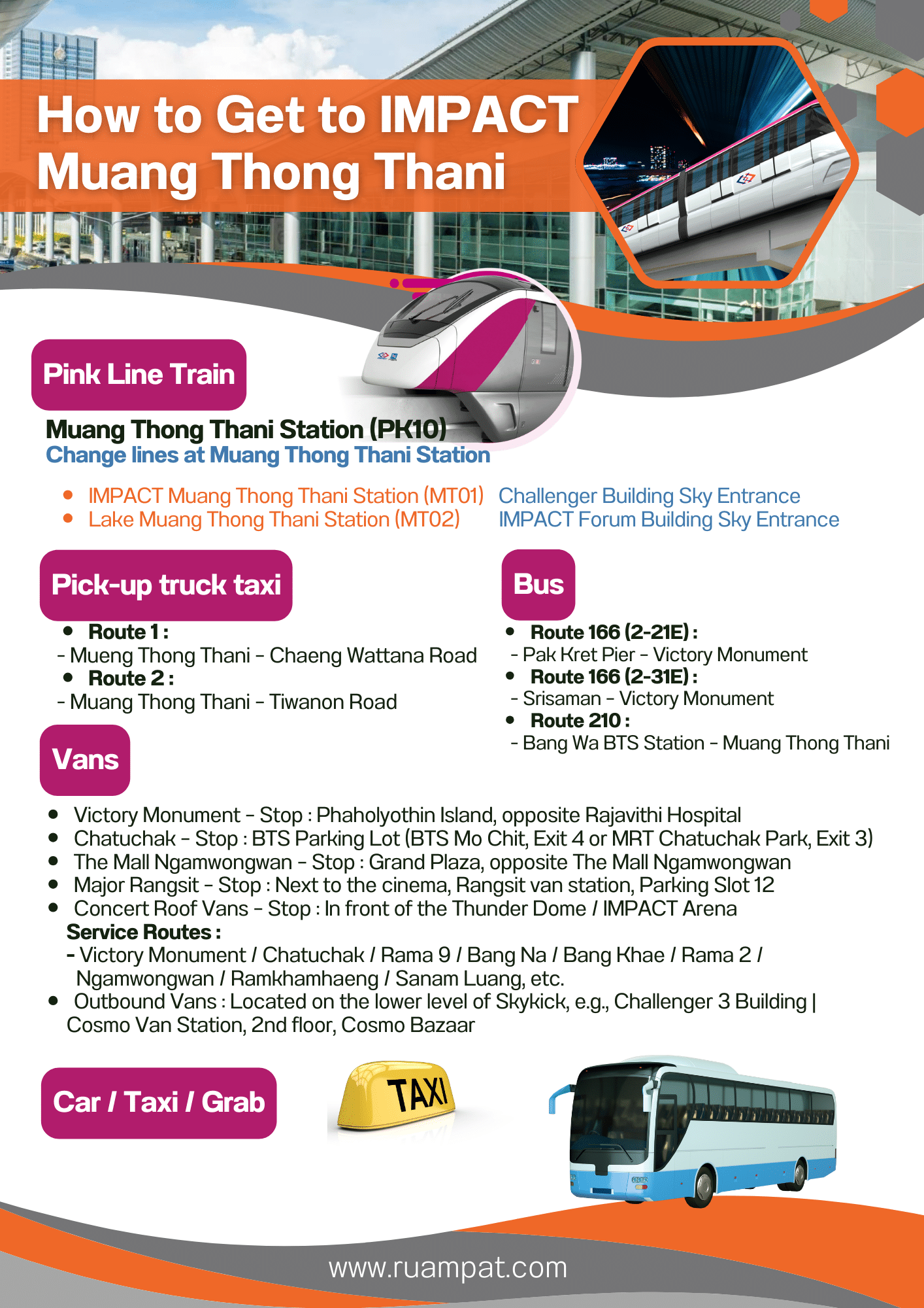 ผู้เข้าชมสามารถเดินทางมายัง IMPACT เมืองทองธานี ได้หลายเส้นทาง